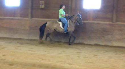Isabella de la Richuelo (Joyero de La Hacienda x Rosa Hermosa Dos) is a beautiful dun Paso Fino mare. She has previous show points in the pleasure division and Ashley hopes to continue competing in the show ring with her. She has a lot of brio and loves to work. She is a granddaughter of both Capuchino and Amadeus.