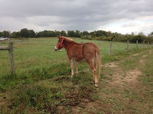 Esperanza is a mustang mare that originally came from Nevada. She does not have a freeze brand. She and her herd mates were fenced in by a cattle rancher trying to protect his cattle grazing lands. A few rescue groups stepped in to divide and adopt out the trapped group of mustangs. She was captured and then adopted by Ashley in 2005. She has gone from completely untouchable to being ridable. She definitely still has her quirks though!